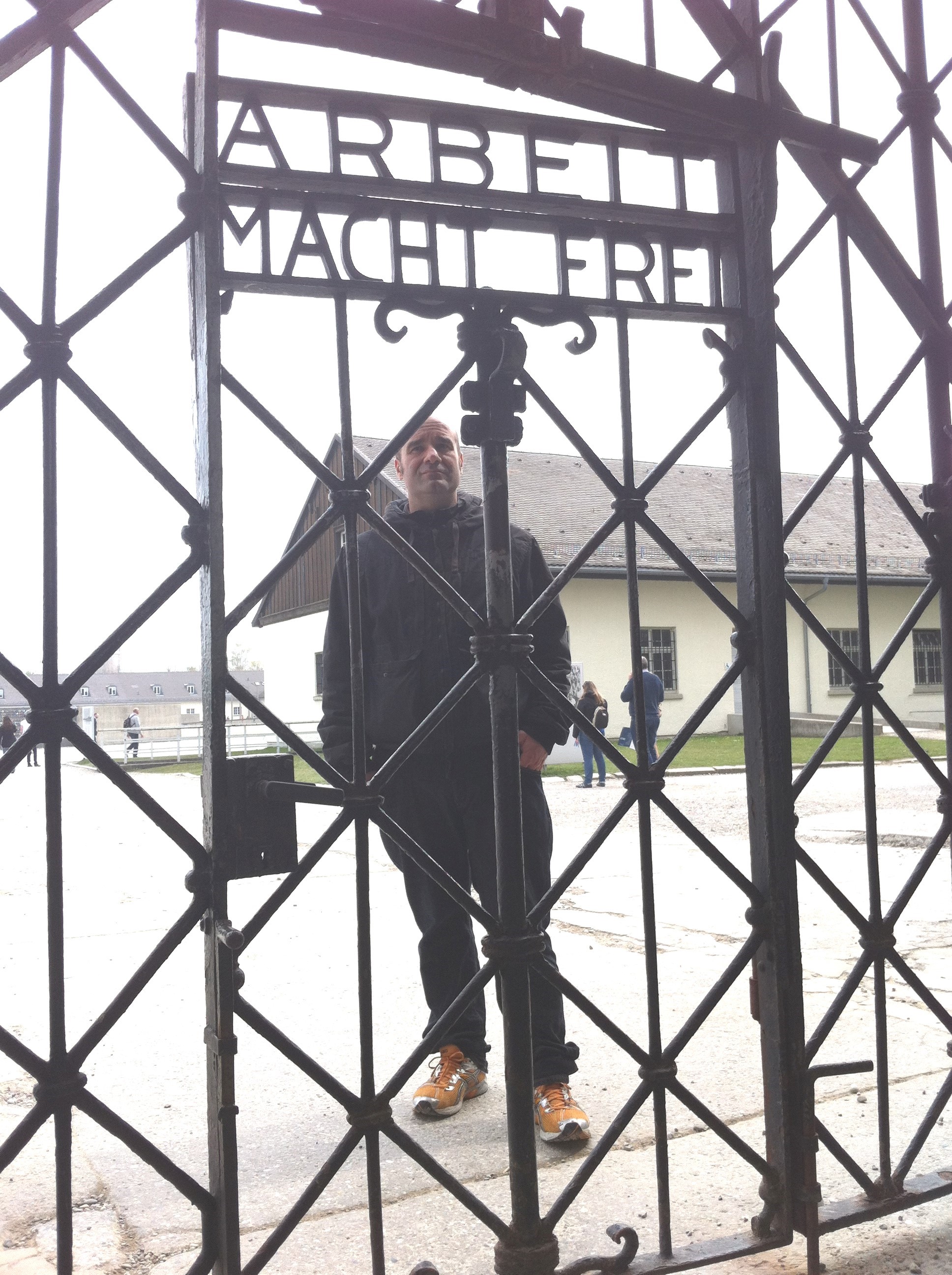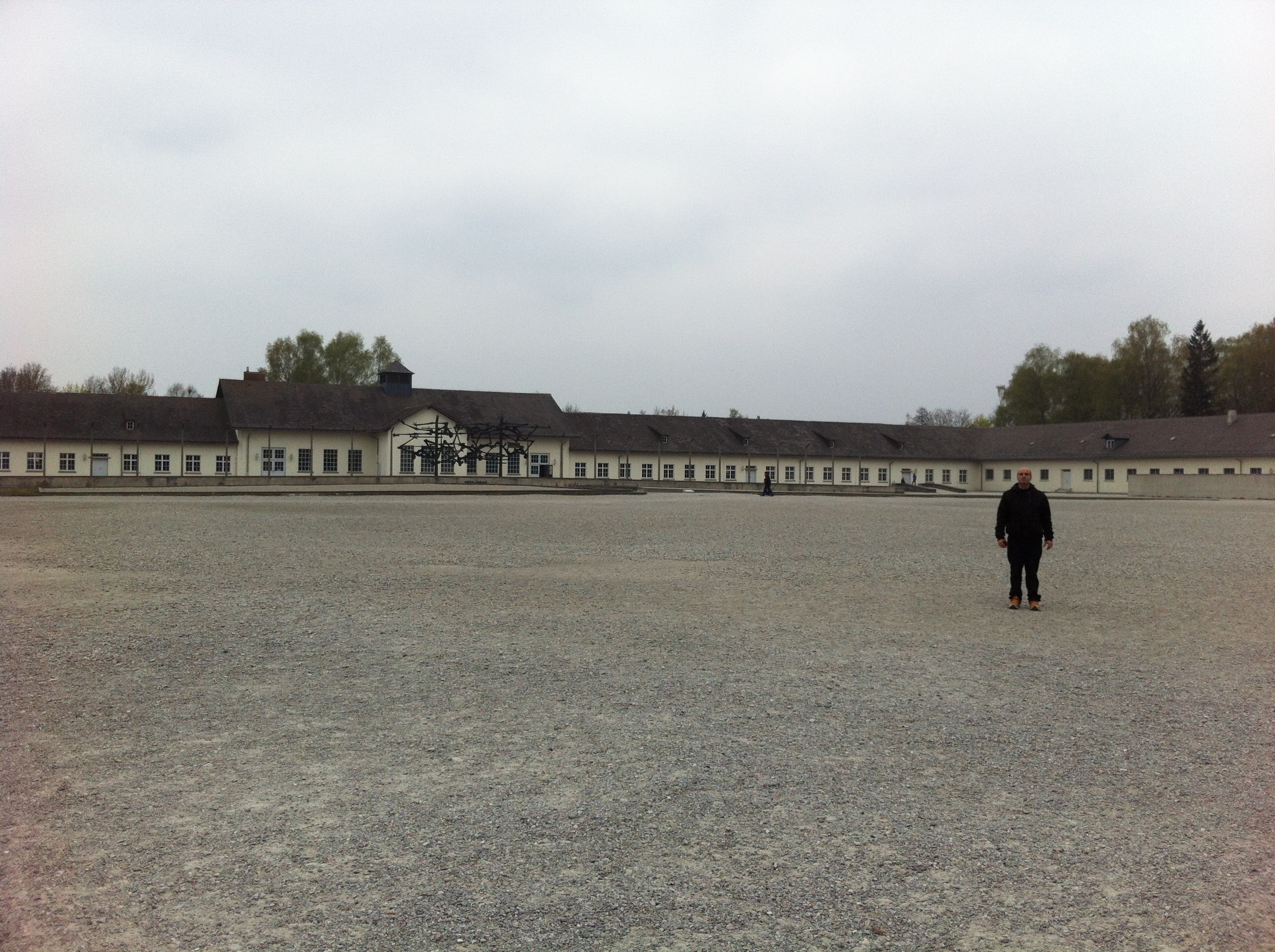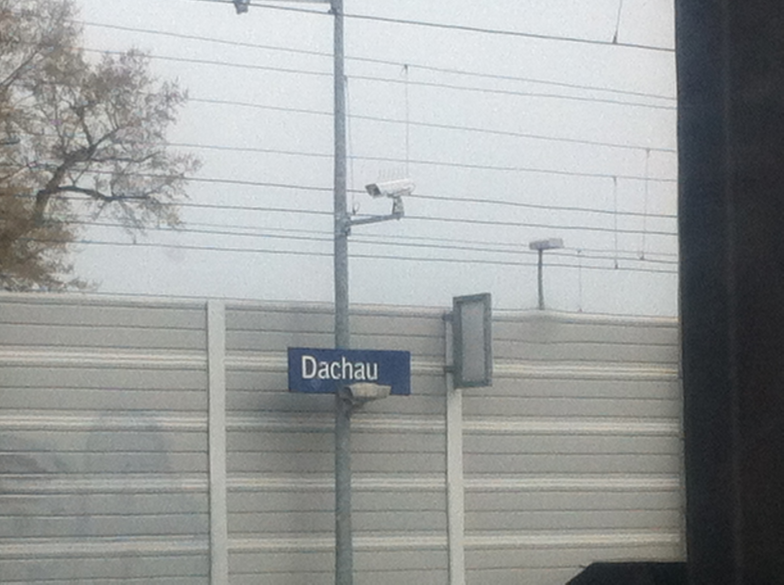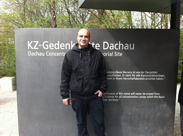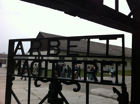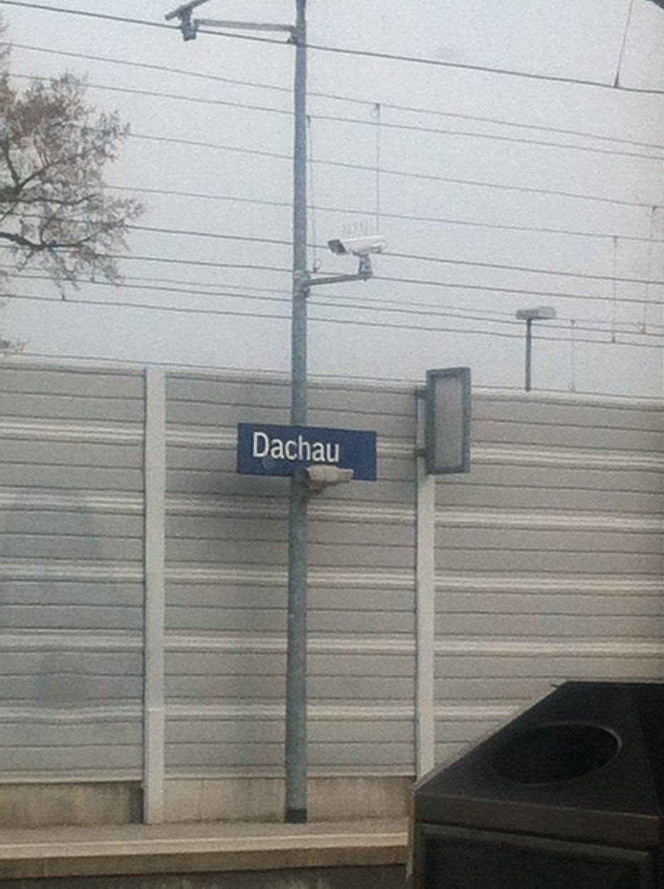 Toda este esplendor se torna parco y descarnado al llegar a Dachau. Un pueblo nada especial que al bajar del tren ya encuentras indicaciones para llegar al KZ o campo de concentración. Es un cuidad pequeña tosca como funcional sin florituras. Al llegar al campo de concentración al bajar del autobús hago cola, para hacerme una foto delante del cartel donde indica que estamos en un sitio tan singular.
