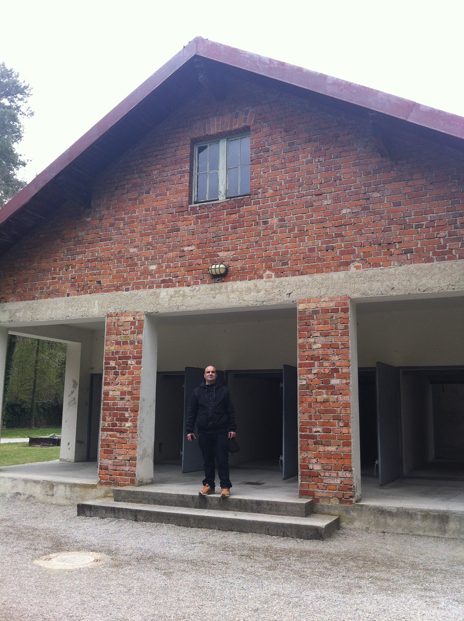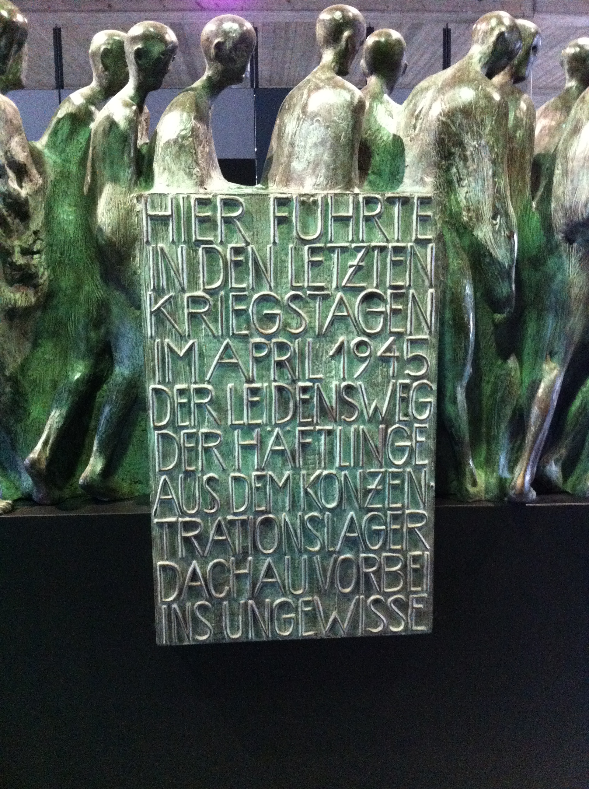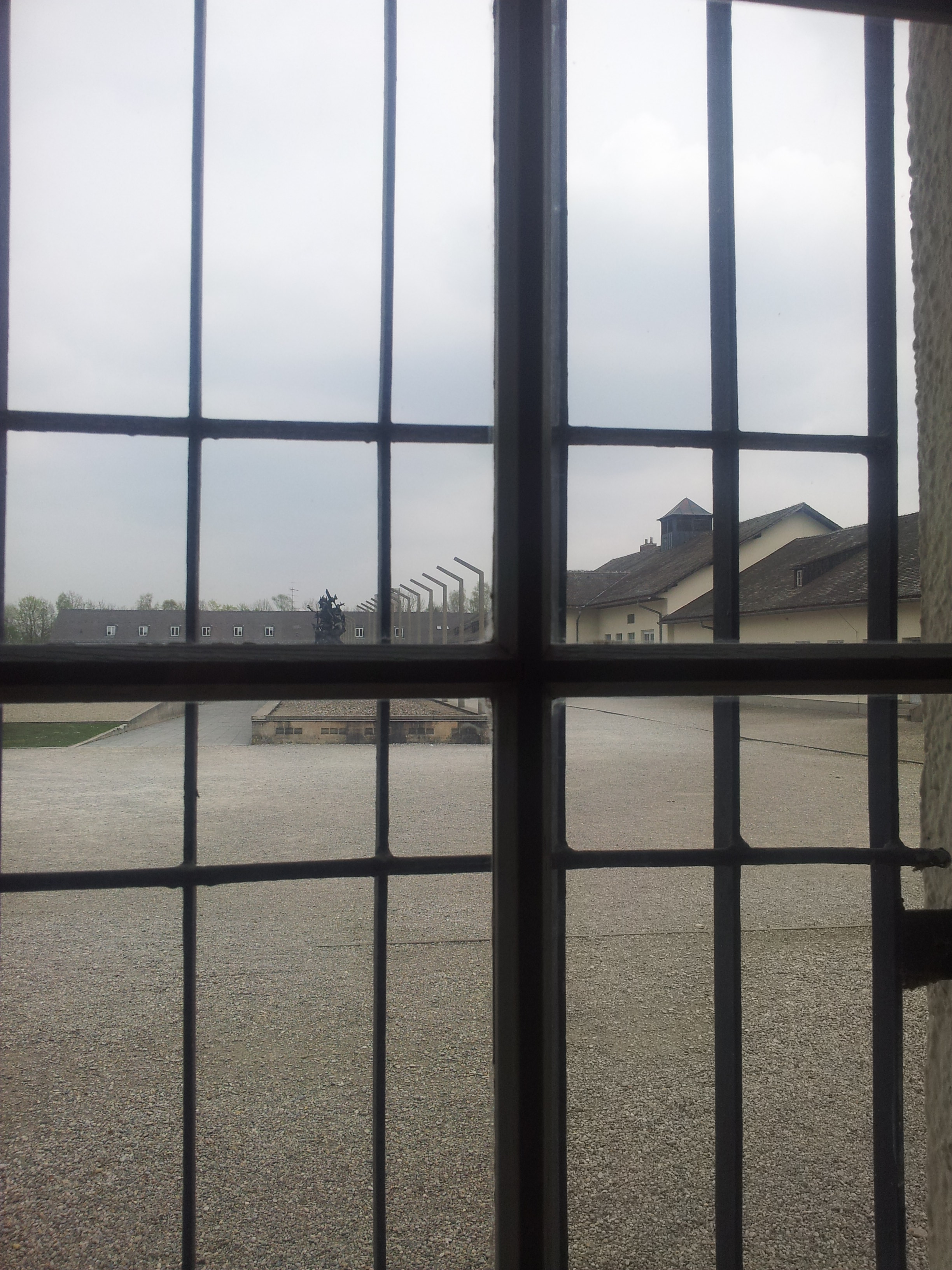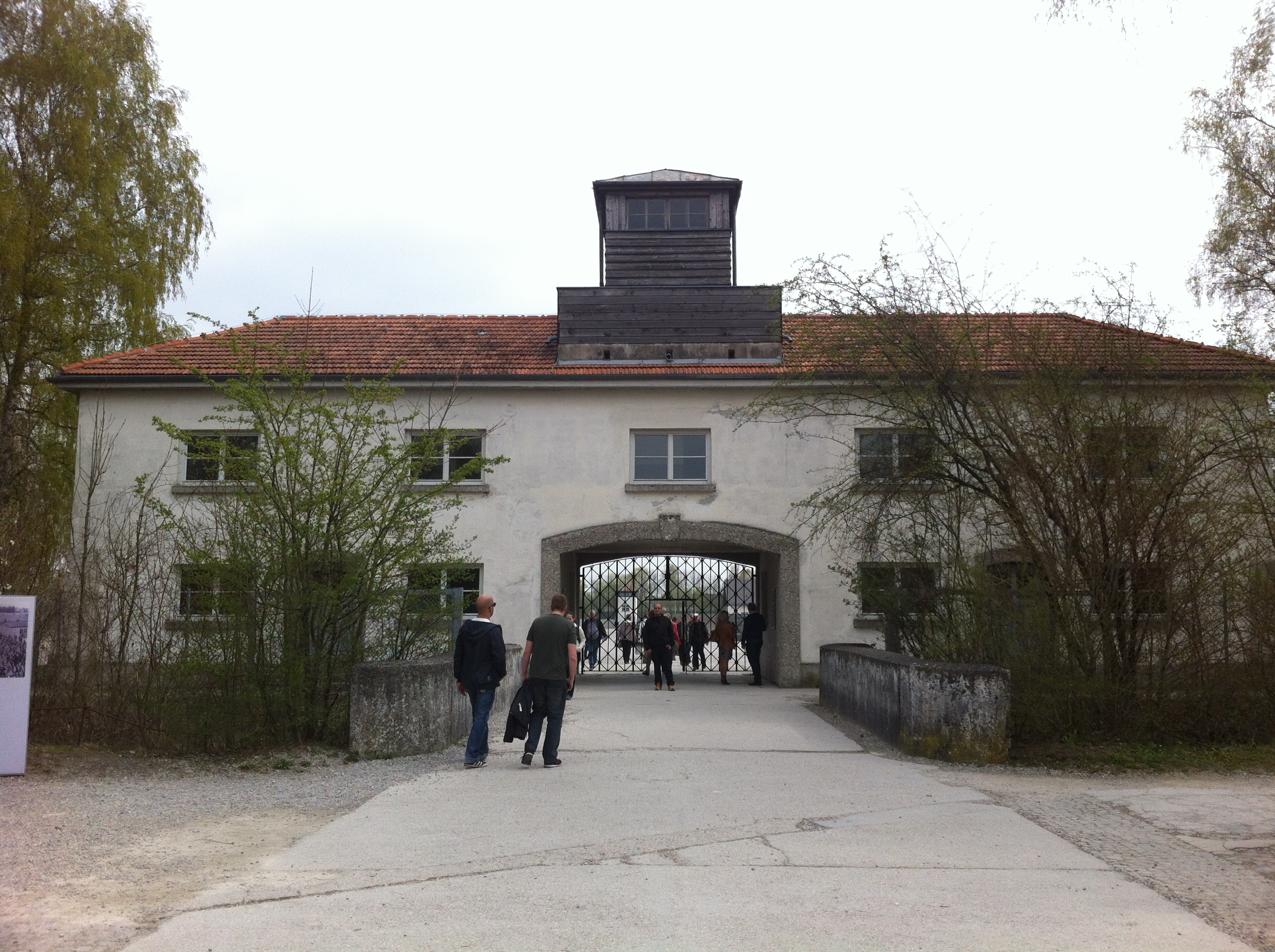 Toda este esplendor se torna parco y descarnado al llegar a Dachau. Un pueblo nada especial que al bajar del tren ya encuentras indicaciones para llegar al KZ o campo de concentración. Es un cuidad pequeña tosca como funcional sin florituras. Al llegar al campo de concentración al bajar del autobús hago cola, para hacerme una foto delante del cartel donde indica que estamos en un sitio tan singular.