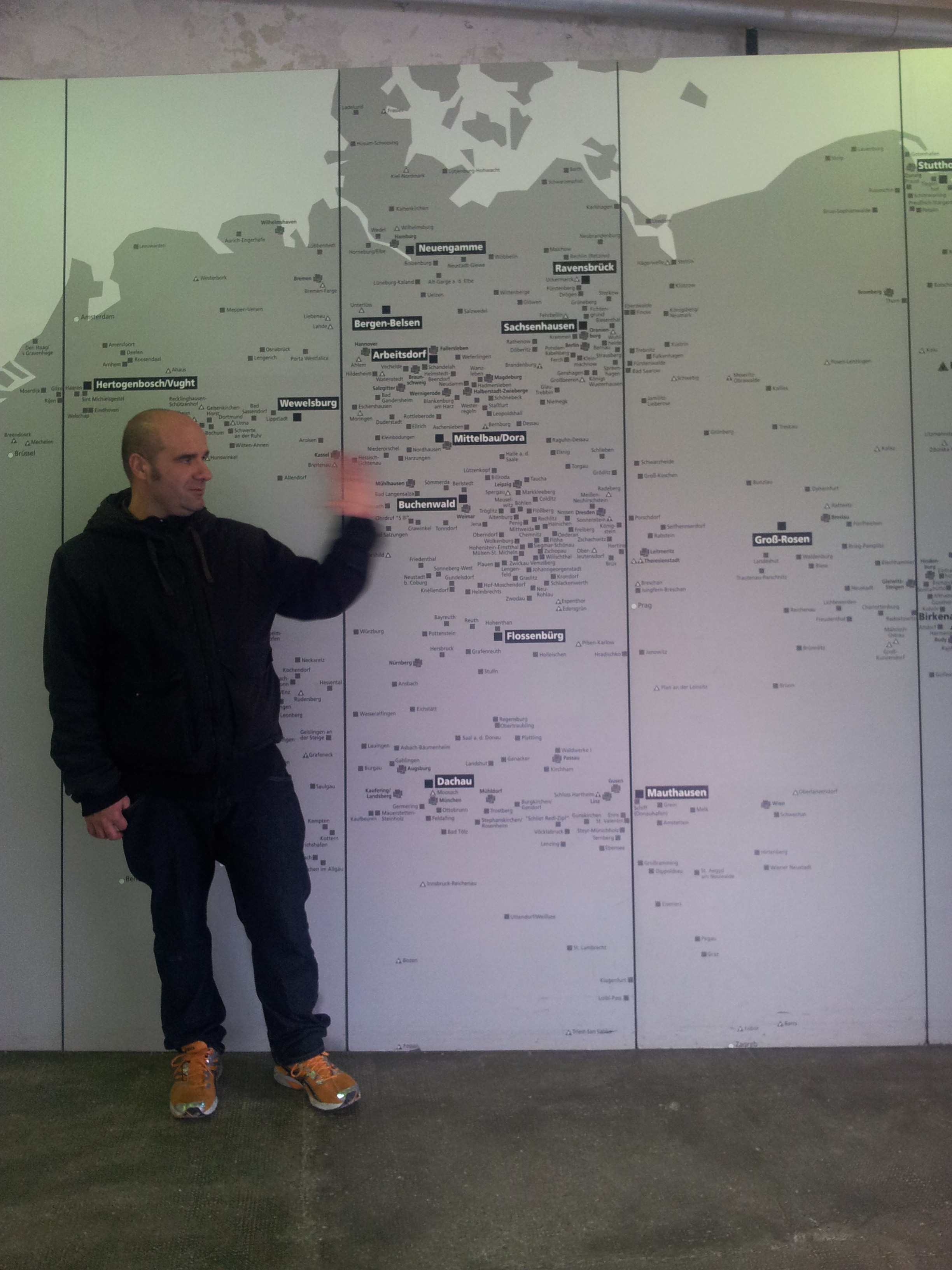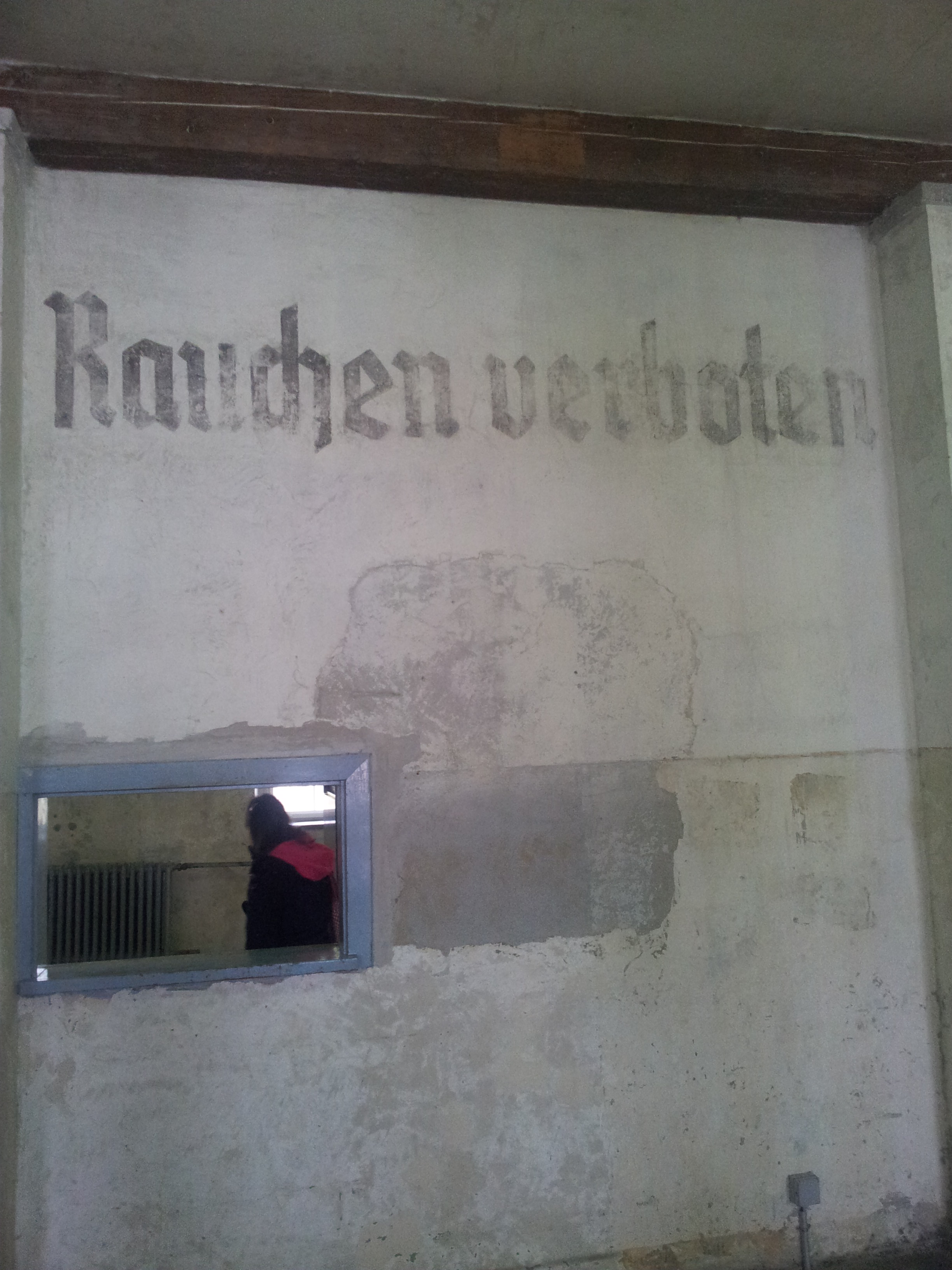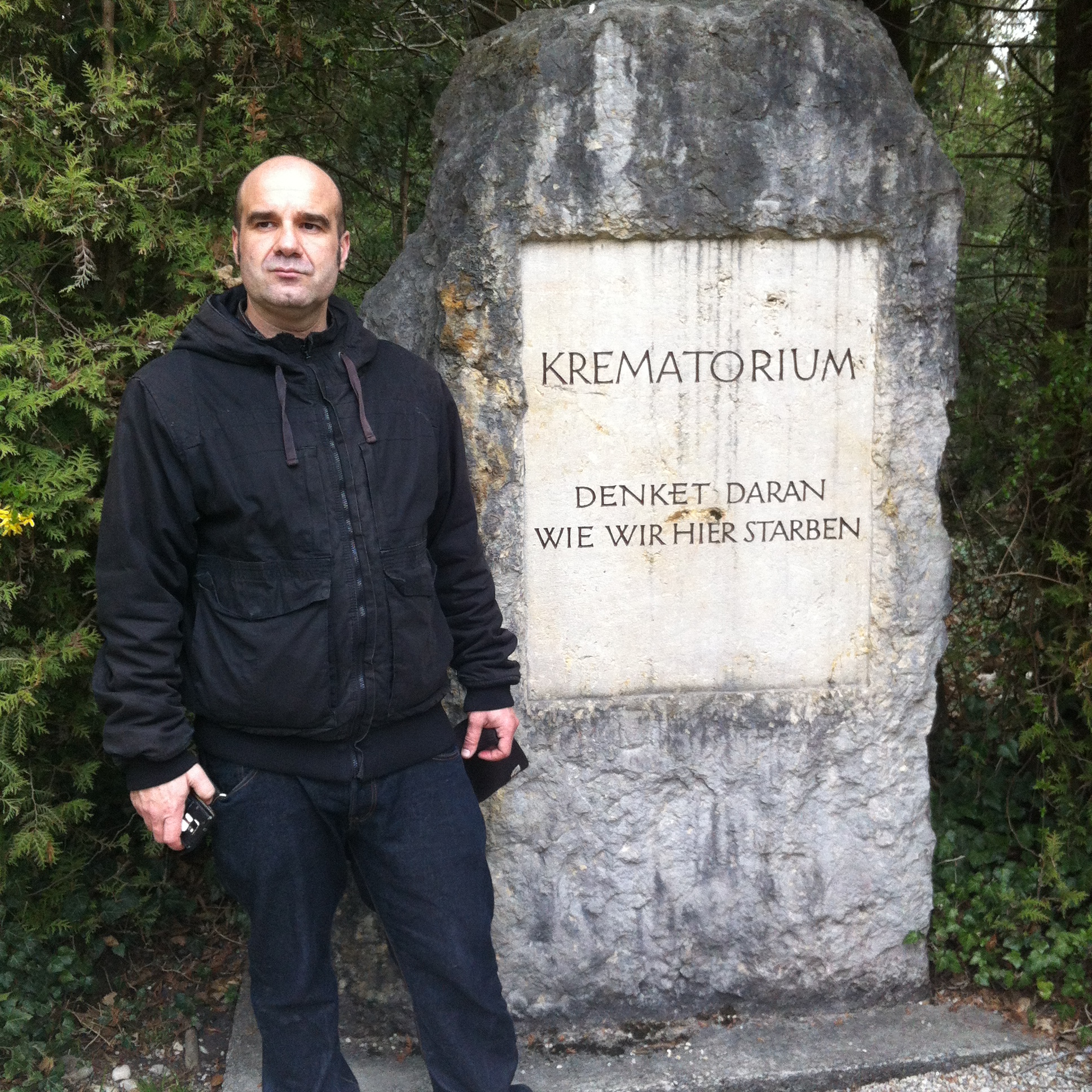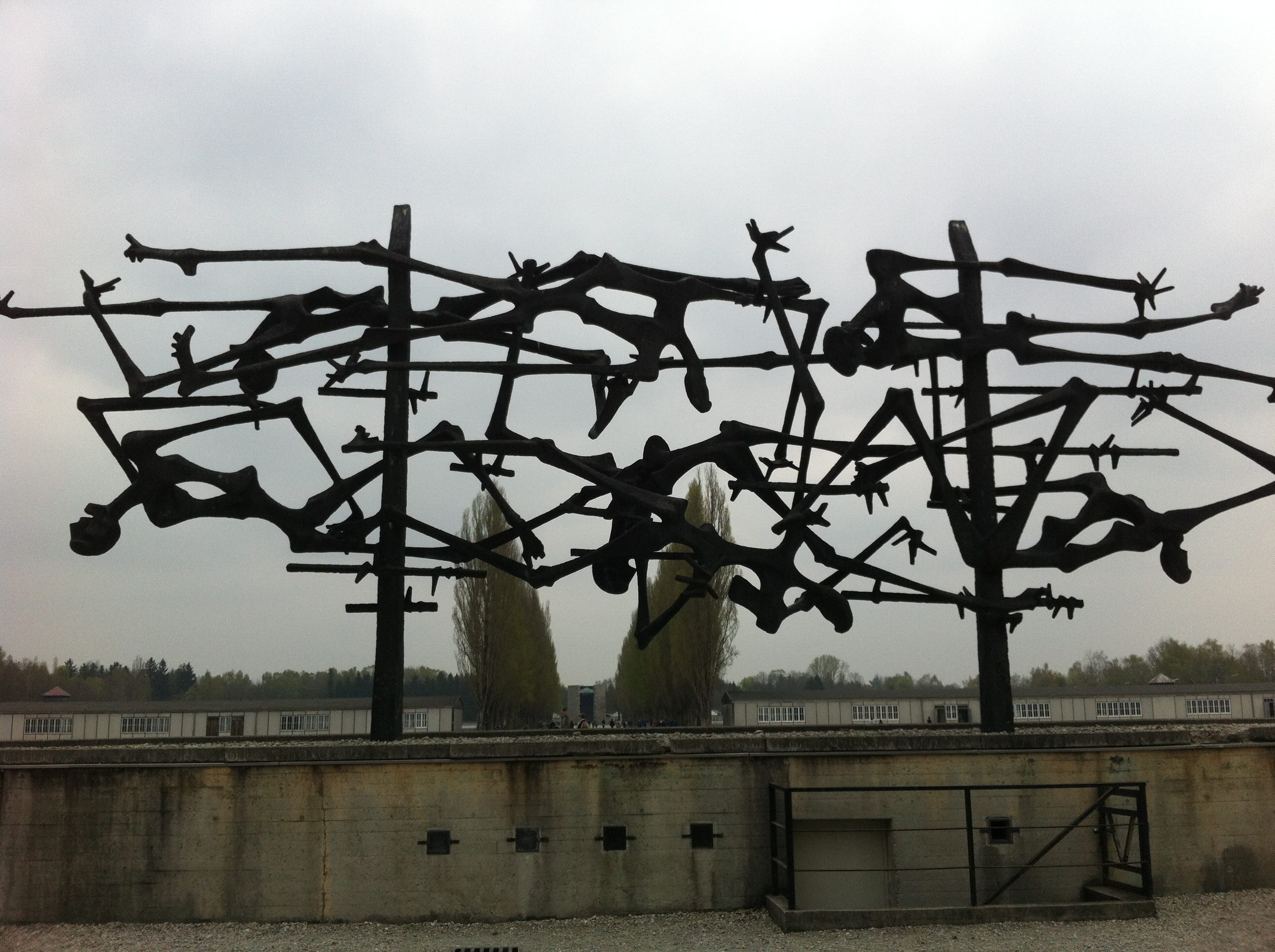 Toda este esplendor se torna parco y descarnado al llegar a Dachau. Un pueblo nada especial que al bajar del tren ya encuentras indicaciones para llegar al KZ o campo de concentración. Es un cuidad pequeña tosca como funcional sin florituras. Al llegar al campo de concentración al bajar del autobús hago cola, para hacerme una foto delante del cartel donde indica que estamos en un sitio tan singular.