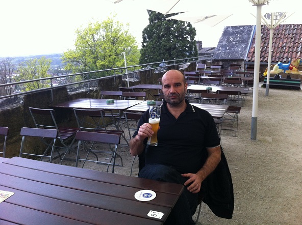 Una cerveza Spalter en el bar Palais Schaumburg antes de visitar el Tribunal Regional de Núremberg, en la sala 600 donde llevaron los aliados a los últimos Nazis en el 1945 y 1946 al tribunal en los famosos Procesos de Núremberg. Rudolf Hess ayudante de Hitler Cadena perpetua, Hermann Göring, Comandante de la Luftwaffe y Presidente del Reichstag, muerte en la horca, Albert Speer, Arquitecto de la obra nazi y Ministro de Armamento 20 años. También el empresario Gustav Krupp, industrial que usufructuó del trabajo esclavo, estaba en los juicios y escapó sin condena.