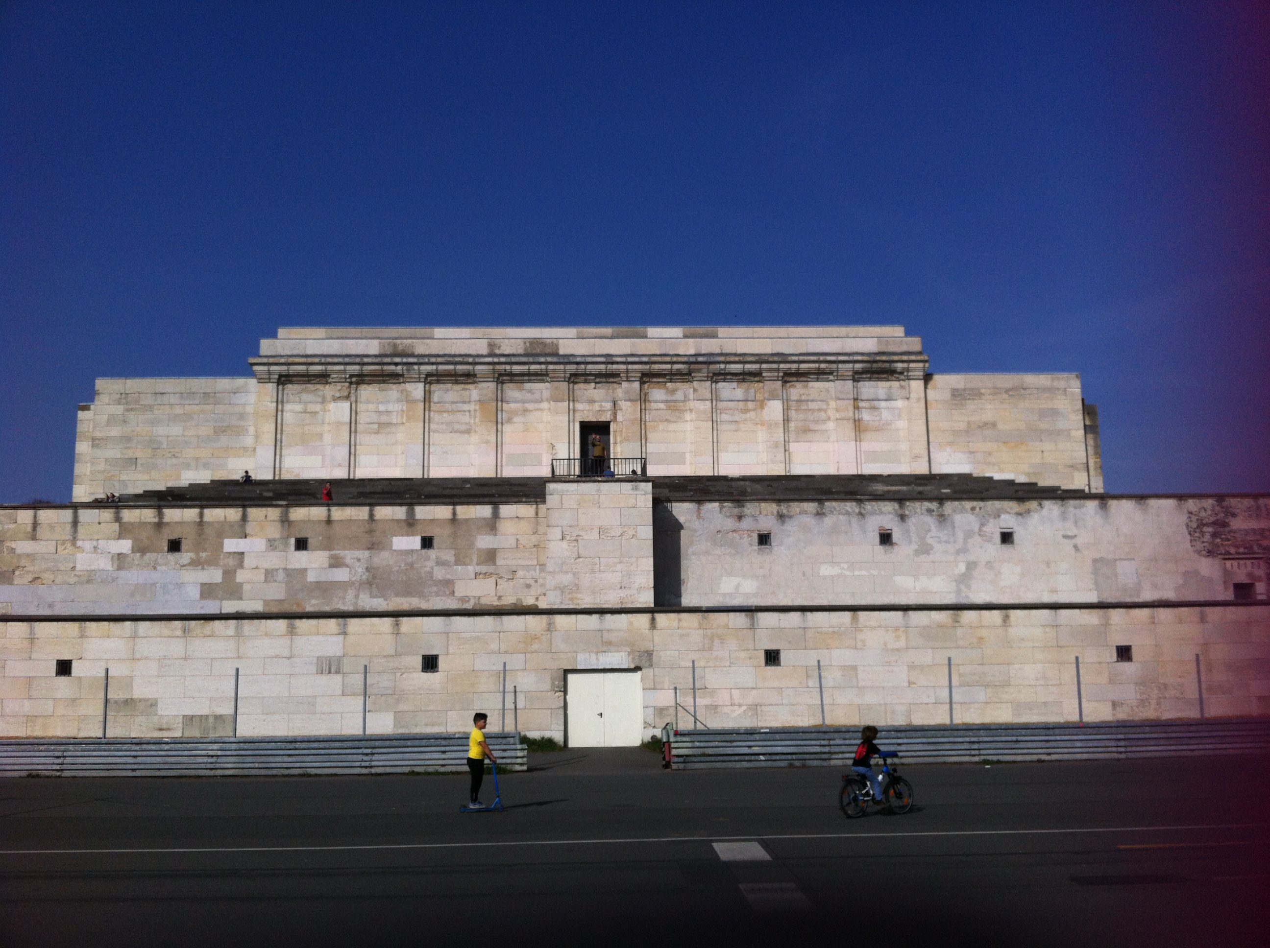 Visitar la versión hitleriana del Coliseo romano tomando una cerveza Gutmann desde la otra orilla del lago Dutzenteich en el merendero Gutmann es inevitable tener flash-back. Se ve un espacio creado para el recreo de la Europa acomodada, pasear por el Campo Zeppelín, el Nazi Party Rally Grounds, donde el Führer pasaba revista a sus tropas y realizaba los desfiles militares megalómanos.