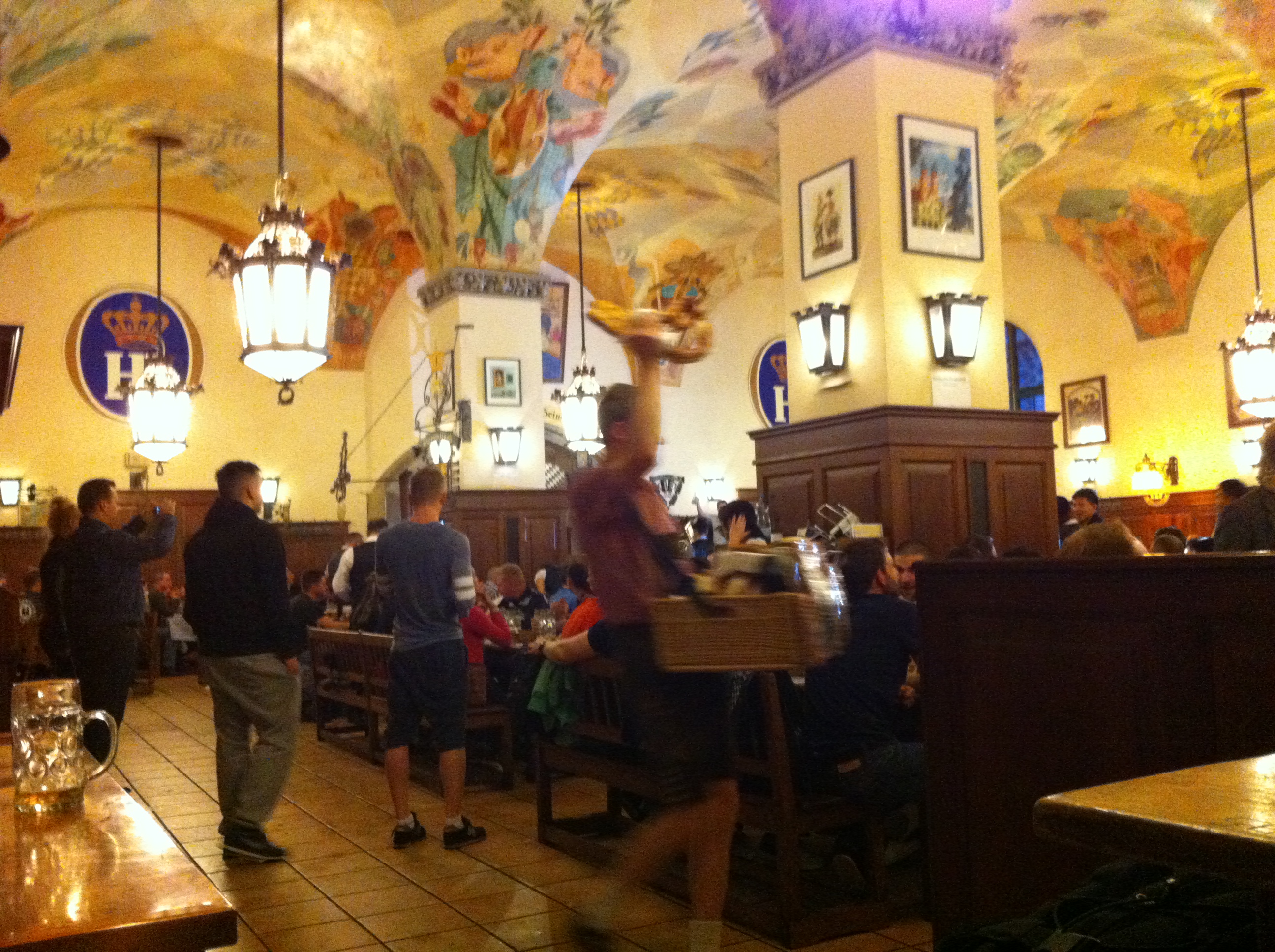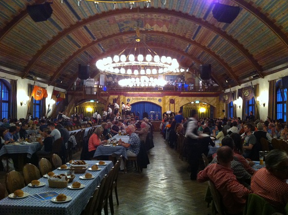 Para seguir el tour GastroNazi, una parada obligatoria es tomar una cerveza en HB, el Hofbräuhaus, una de mis favoritas. El HB es otro de los puntos que hace volar la mente a los mitines de Hitler es el lugar con donde se gestó el partido Nazi. Hoy en día es un sitio popular muy comercial, con miles de fans en todo el mundo. Esta siempre lleno, las jarras de cerveza vuelan en los brazos de las camareras. Pasan bandas de música del folk alemán por todo el edificio, que ubica el jardín (Biergarten), Festsaal (Sala de espectáculos), Bräustüberl (Restaurante tranquilo, si no entra el equipo de música popular), Schwemme que es traducida literalmente la abundancia, estando en la planta baja esperando al pueblo sediento.