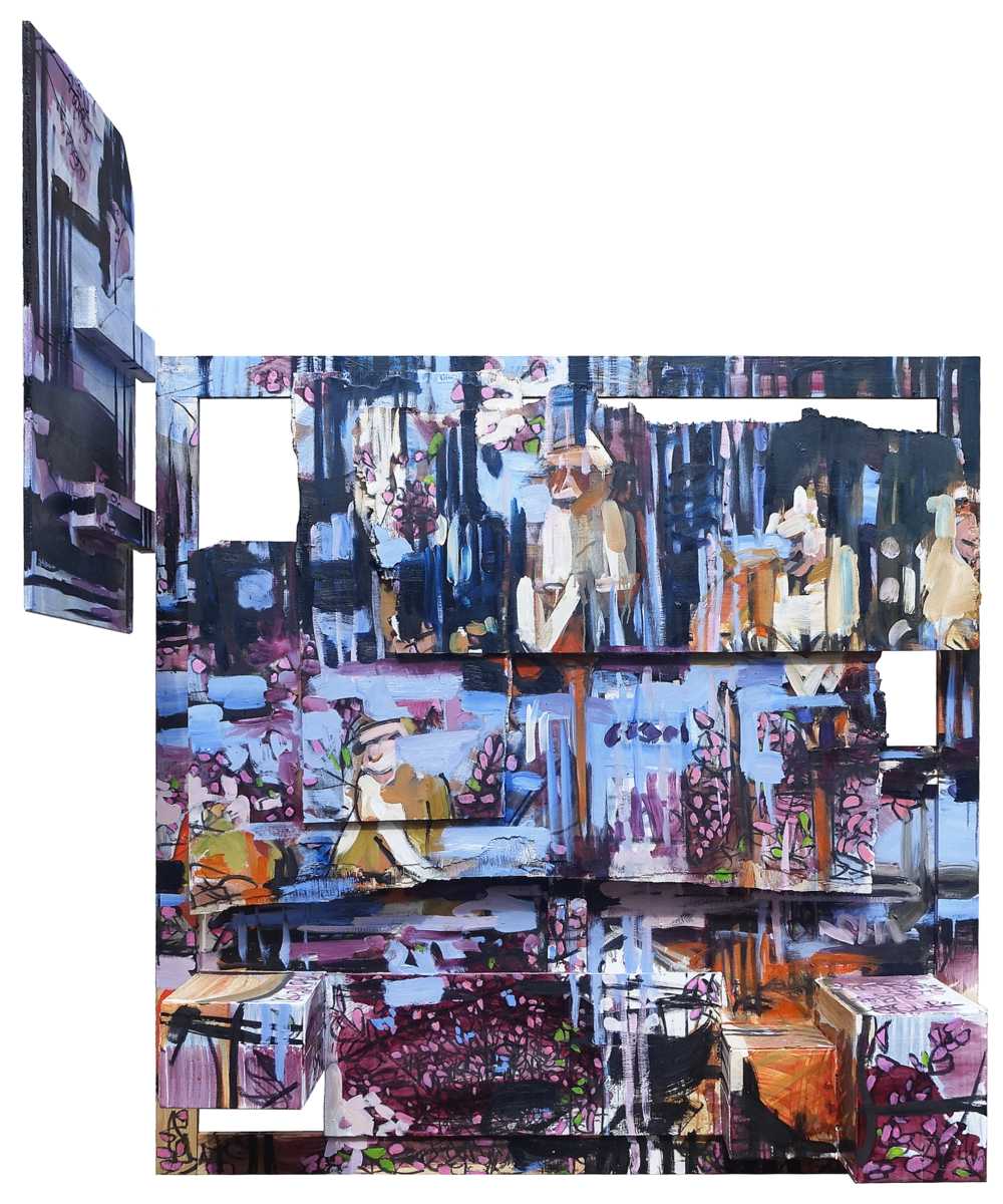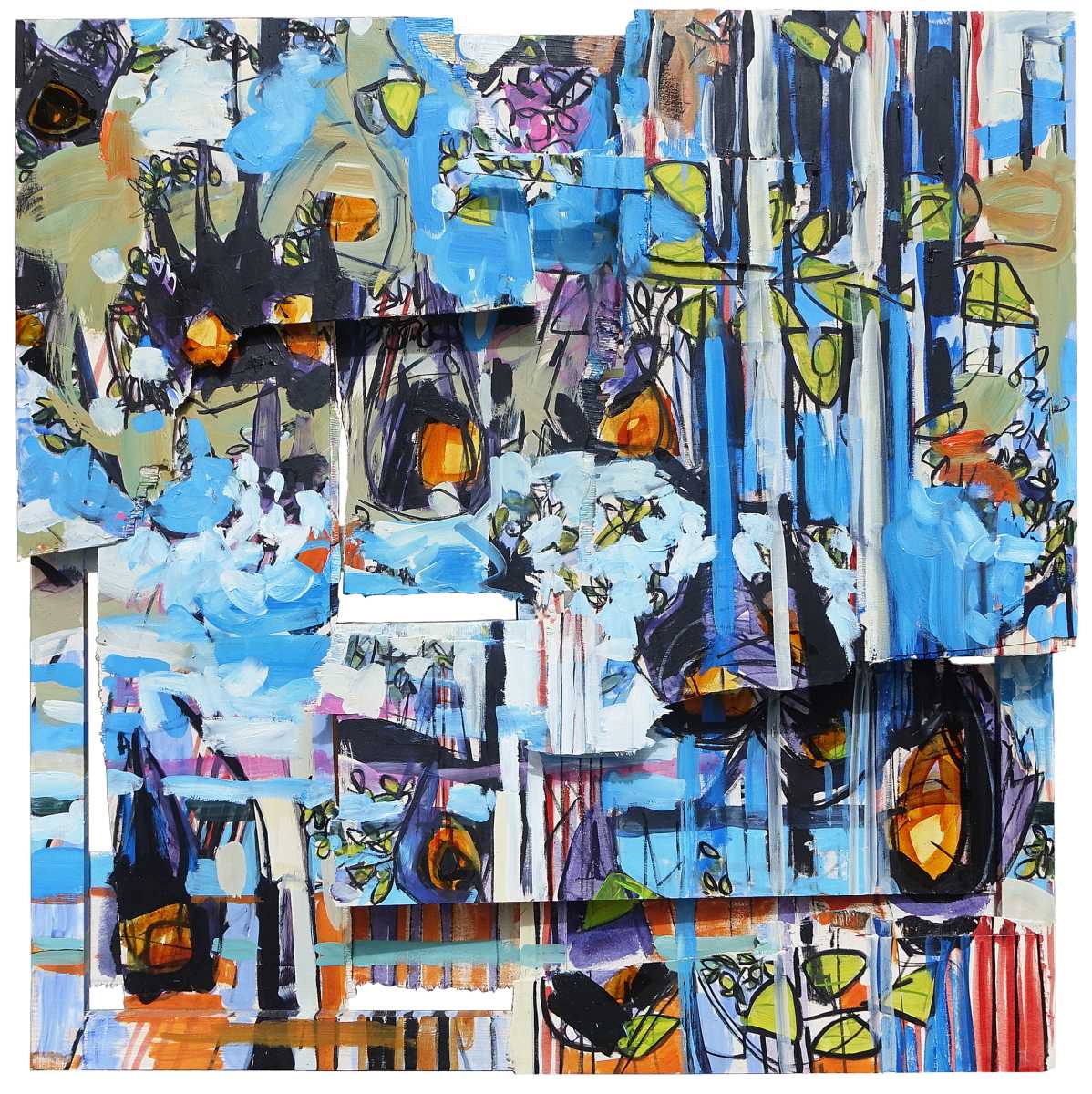 Sobre estructuras tridimensionales, su pintura, de trazo muy personal, busca la pureza del arte en la mezcla de materiales y de formas, arrastrando al espectador en su corriente de color y movimiento.