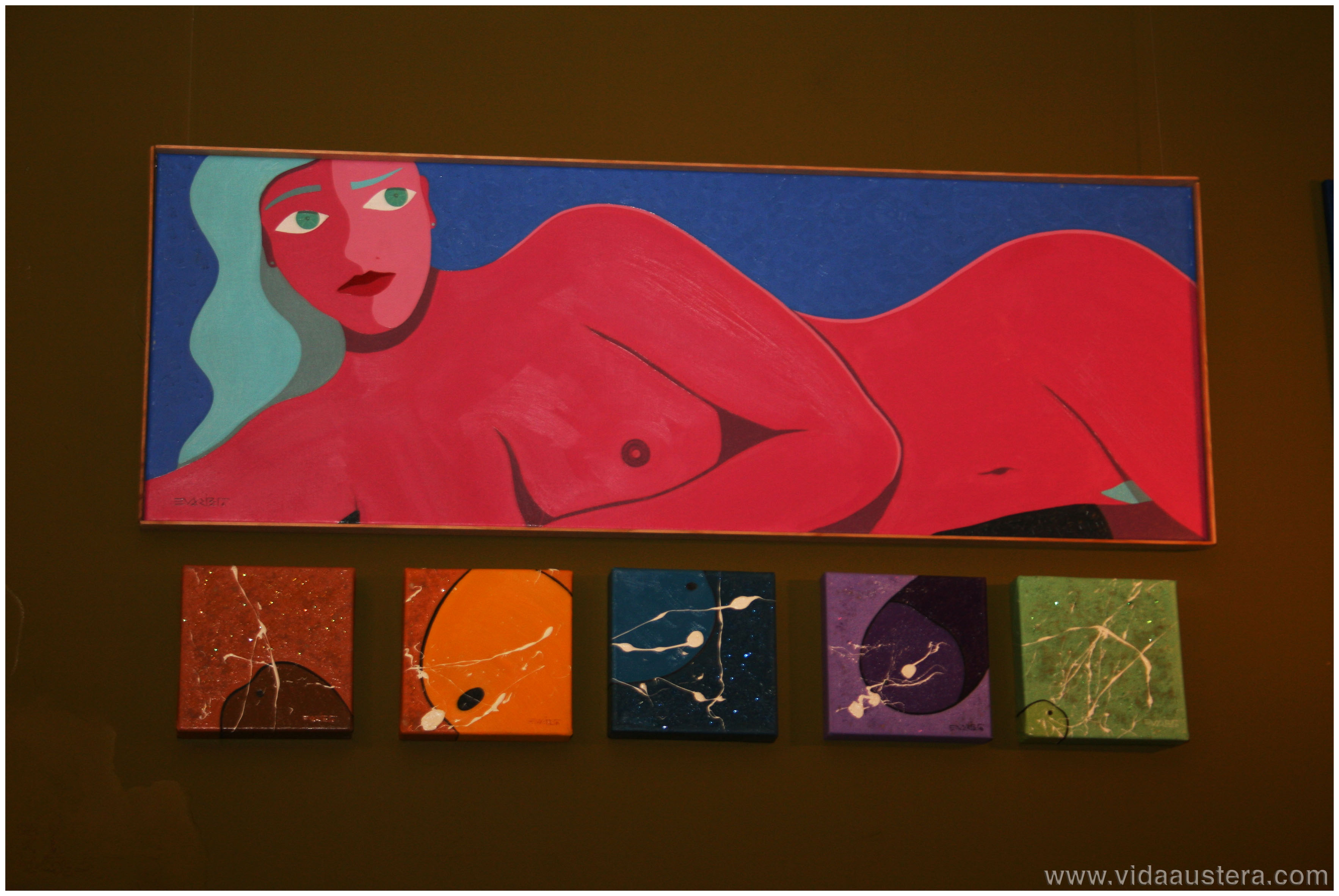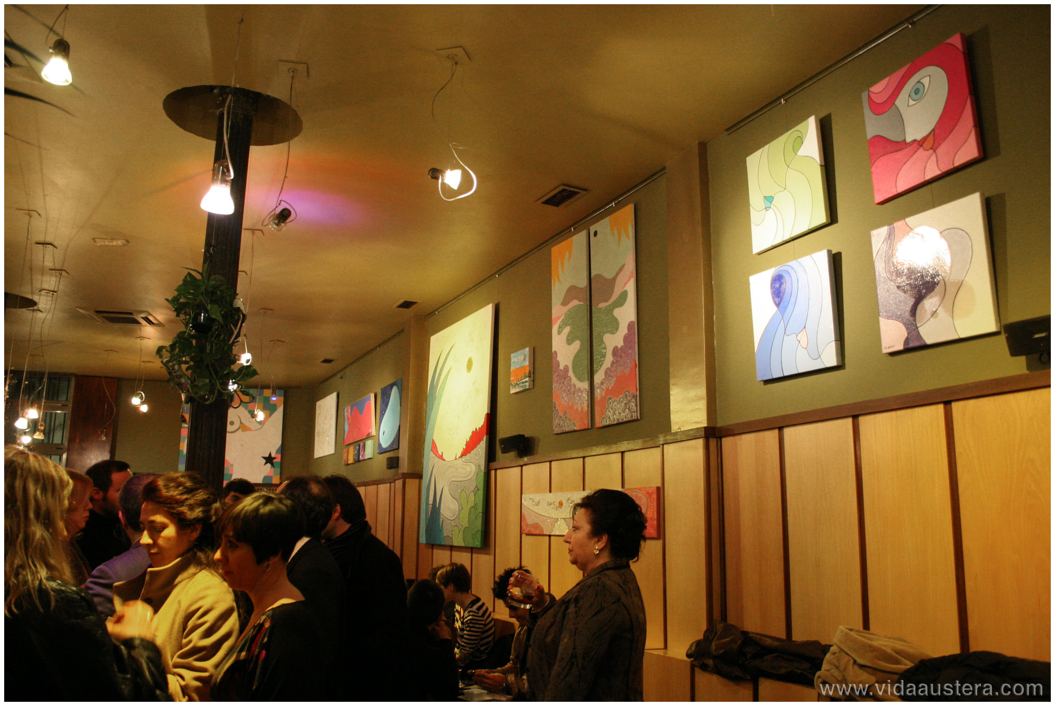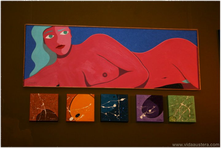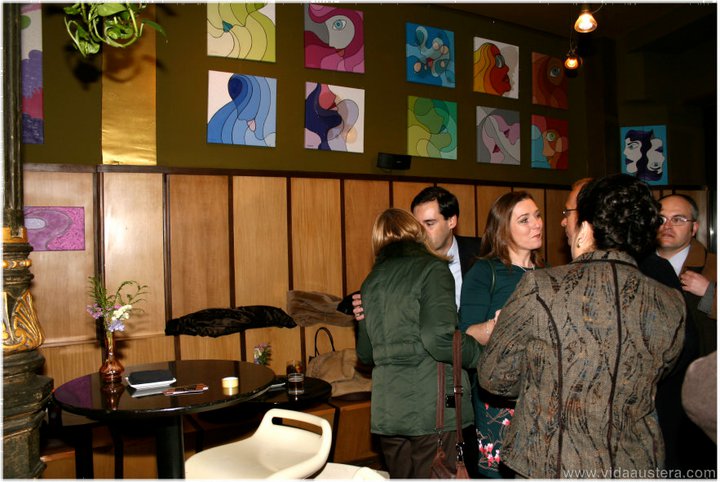Los amantes a la pintura y los fans de Evaristo Jesús nos dimos cita para comprobar cuan divertidos son sus cuadros. Además las atrevidas mezclas cromáticas realizadas por la diseñadora de interior Estrella Sarmiento, se suman a las aportaciones de texturas, confiriendo volumen a las piezas.