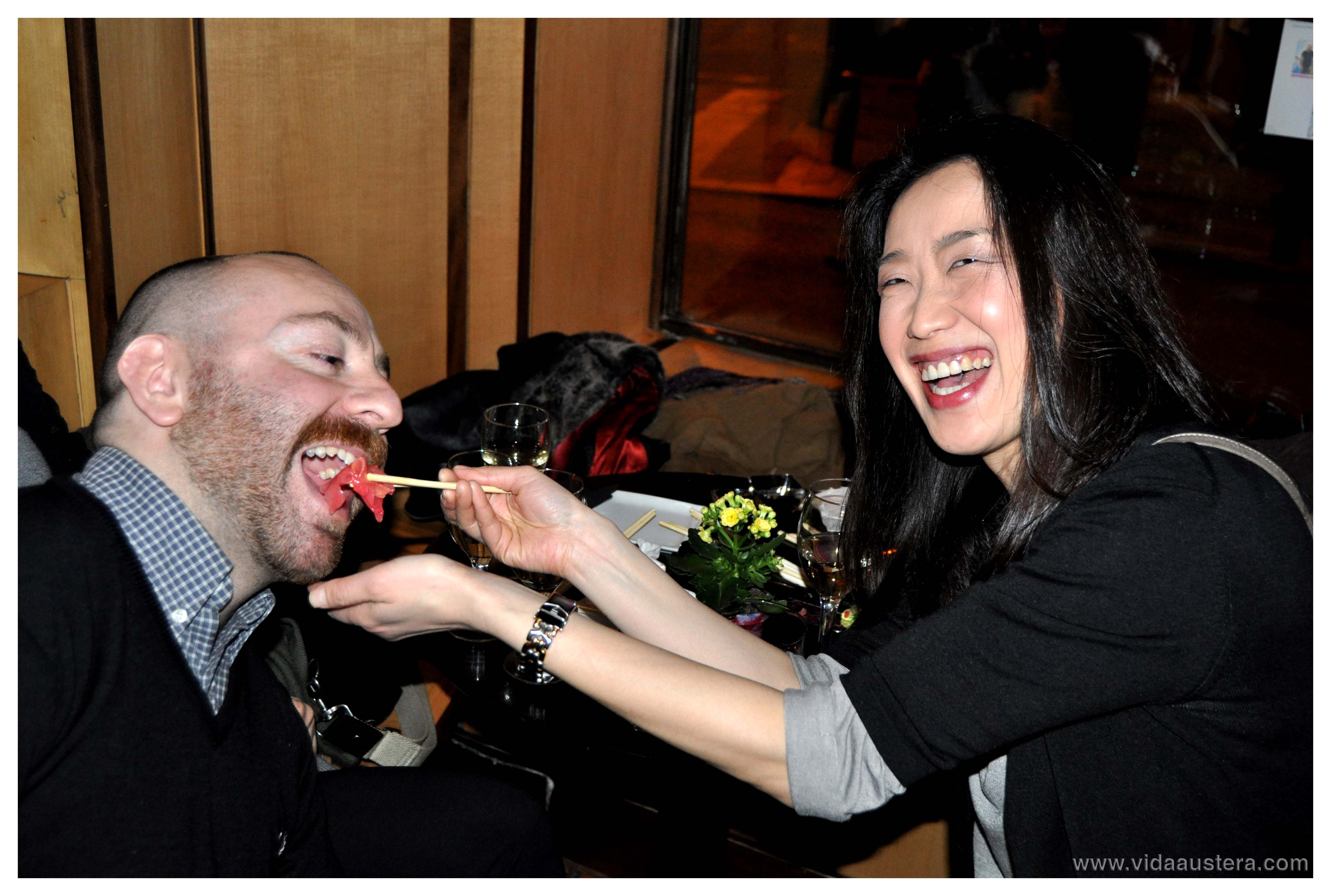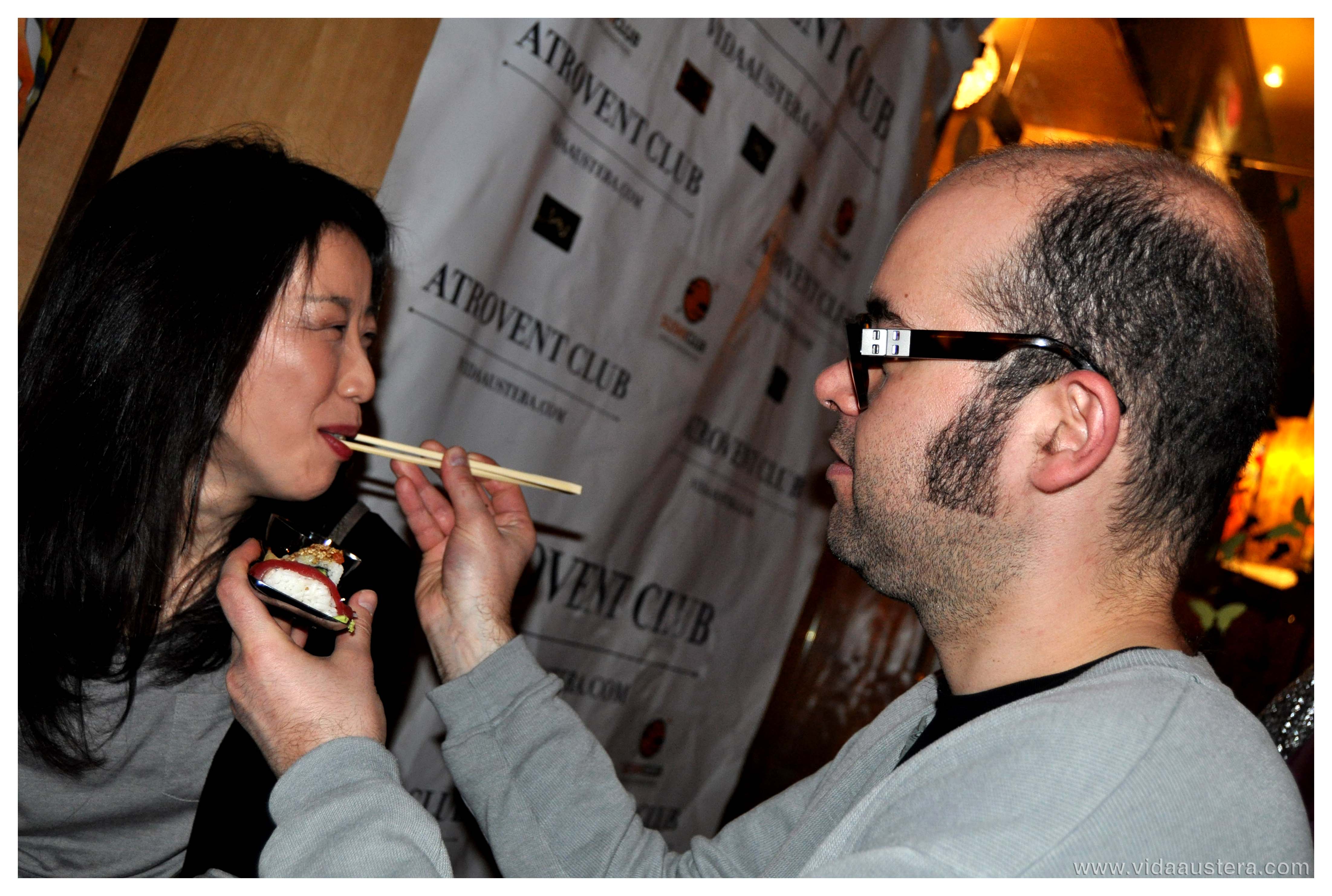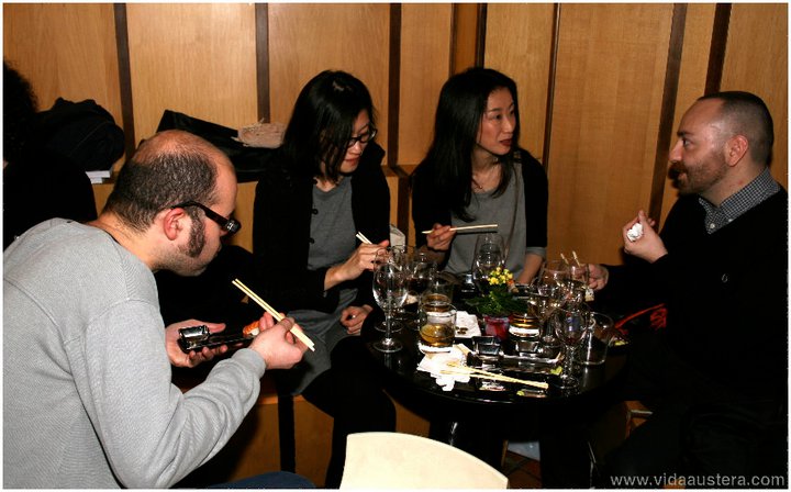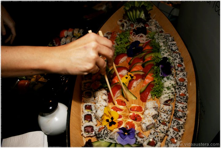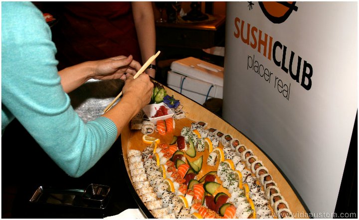 Los eventos Vidaaustera siempre son atractivas fusiones, y así pudimos degustar un catering asiático de la mano de Sushi Club con los vinos elegidos por Francisco Balda, especiales para sushi y sashimi como Livor Joven 2009 y Genolí 2010 de las bodegas Viña Ijalba.