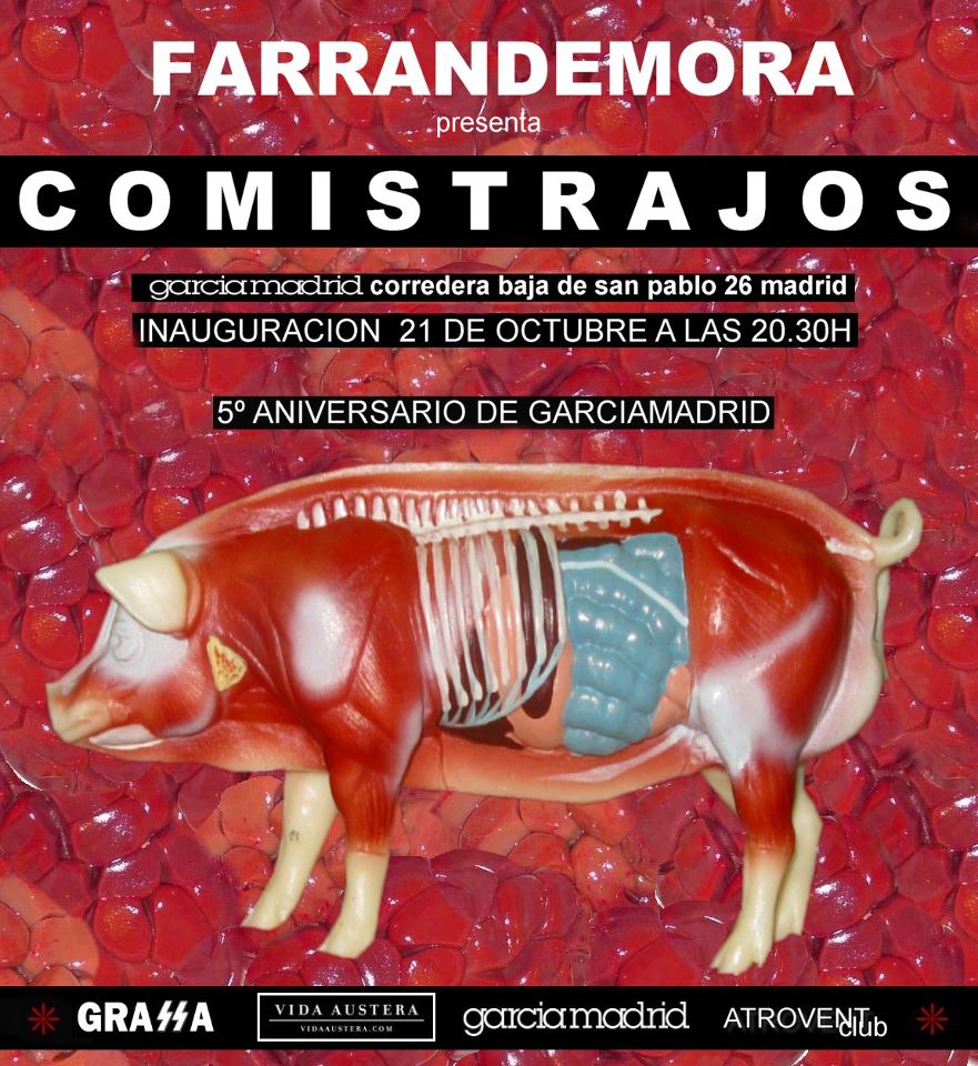 Con motivo del 5º aniversario de Garcia Madrid el pasado del 21 de octubre , se realizó un evento para celebrar su lustro de exposiciones de artistas emergente, esta vez con el todo terreno Farrandemora, que presentó su exposición “Comistrajos” y su customización en exclusiva del nuevo Champagne de la prestigiosa agencia Vida Austera.