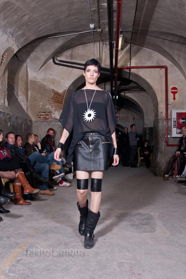El segundo fue de la diseñadora italiana Sonia Giordani, su desfile, intitulado “Portrait in Black & White” ha sido inspirado por las películas de los años ’30 con la actriz Ana May Wang y con influencias punk de los ’80. Utilizando solo dos colores blanco y negro, en prendas de línea recta y graficas, contrastes de corto y largo como el blanco y negro más puro. Sin matices. Sus chicas llevaban cuernos de ciervo que daban un efecto escenográfico muy impactante.